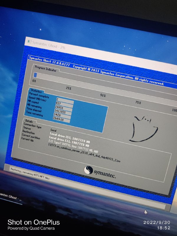 ghost两小时进度2%,以为出问题了就试了试傲梅,嗯…确实最大也就这个速度了,秒40M